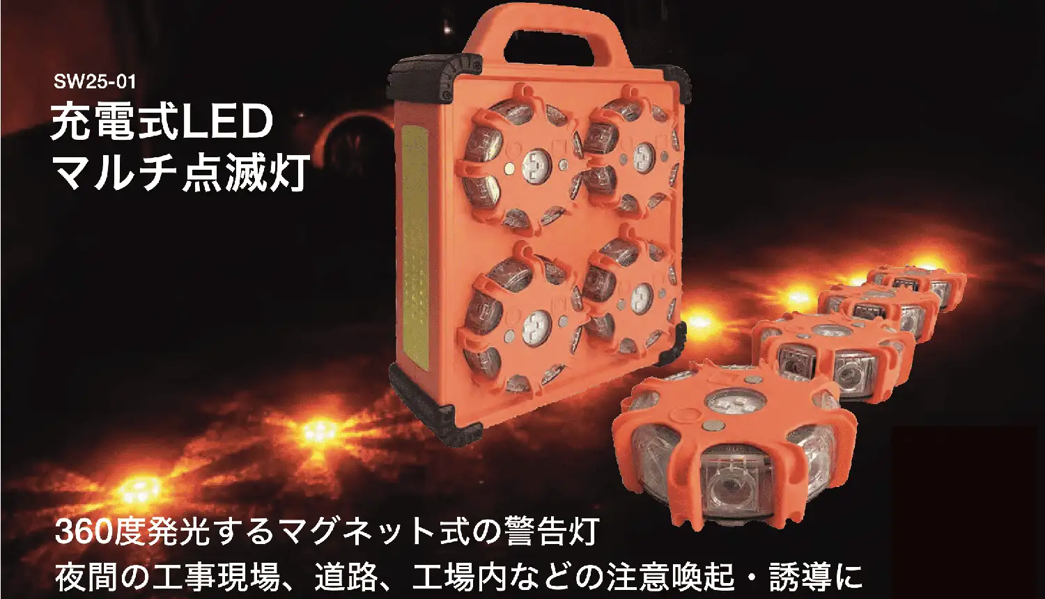夜間の工事現場、道路、工場内などの注意喚起・誘導に最適です。