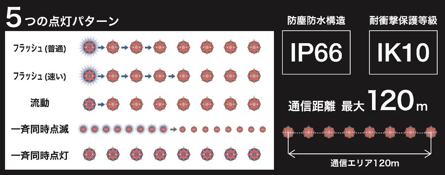 また、規制道路上に並べることで車の誘導灯としての役割を果たすことができ、